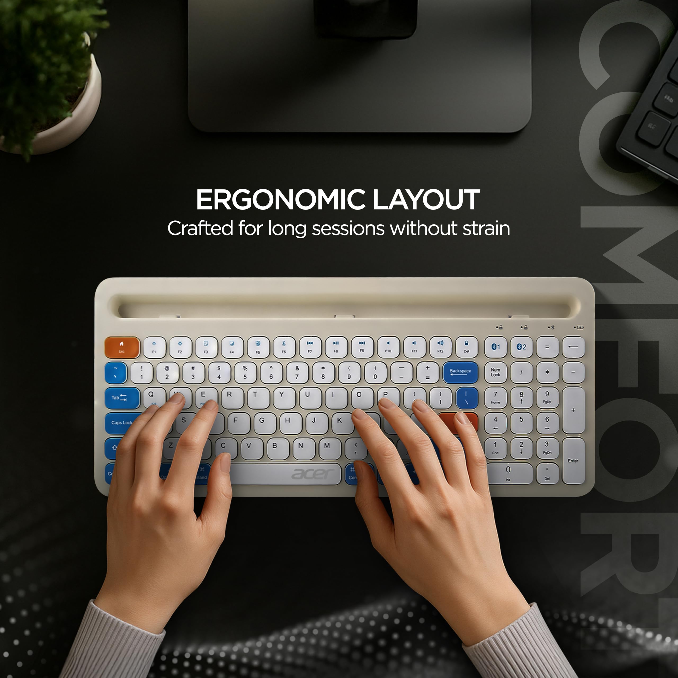 Acer SwiftPRO Multi-Device Bluetooth Wireless Keyboard with Cradle & Numpad | USB-C Rechargeable | 99 Keys, 80H Battery | Compact & Quiet | Compatible with Windows, Mac, Android, Laptop, Tablet, Phone