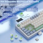 • 【Tri-mode Connection Keyboard】AULA F75 wireless mechanical keyboard supports Bluetooth, 2.4GHz wireless and USB wired connection, can connect up to five devices at the same time, and easily switch by shortcut keys or side button. F75 computer keyboard is suitable for PC, laptops, tablets, mobile phones, PS, XBOX etc, to meet all the needs of users. In addition, the rechargeable keyboard is equipped with a 4000mAh large-capacity battery, which has long-lasting battery life.