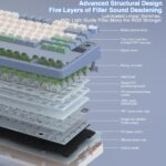 • 【Gasket Structure & PCB Single Key Slotting】This thock heavy mechanical keyboard features a gasket structure, extended integrated silicone pad, and PCB single key slotting, better optimizes resilience and stability, making the hand feel softer and more elastic. Five layers of filling silencer fills the gap between the PCB, the positioning plate and the shaft,effectively counteracting the cavity noise sound of the shaft hitting the positioning plate, and providing a solid feel.