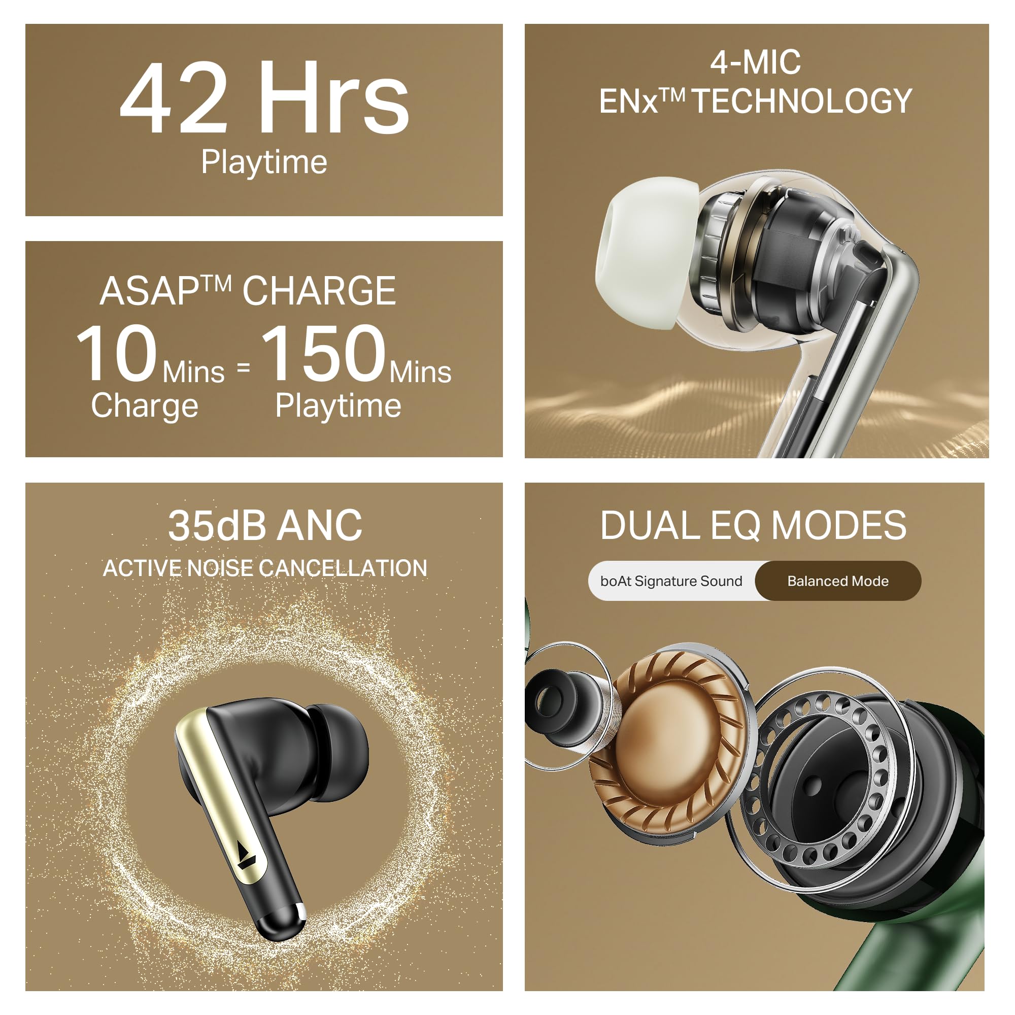- Quad Mics with ENx Tech: Not just ANC, these earbuds also boast four mics with ENx technology. Breeze through calls with high clarity regardless of your location.