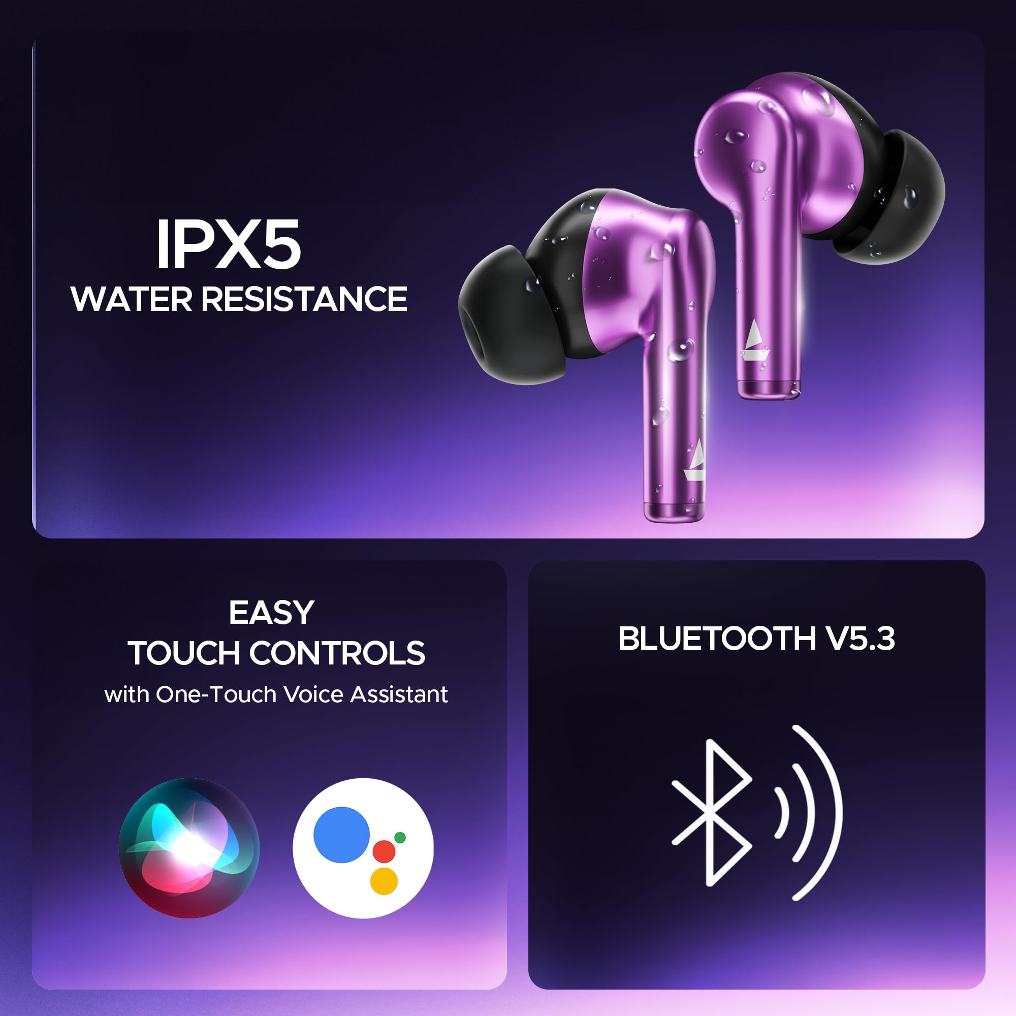 - boAt Signature Sound: Dive into your playlist with heightened immersion thanks to the bass-rich boAt Signature Sound from the powerful 13 mm drivers. Experience songs from your playlist like never before with the booming audio of these earbuds.