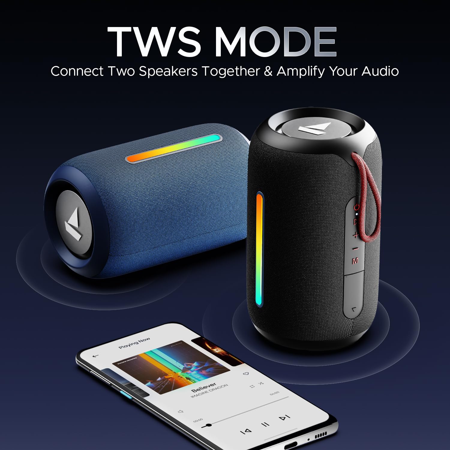 Boat Stone 352 Pro/Stone 358 Pro w/ 14W Signature Sound, Up to 12 Hours Playback, RGB LEDs, TWS Feature, Built-in Mic, BTv5.3, Free Music Streaming on JioSaavn Bluetooth Speaker (Raging Black)