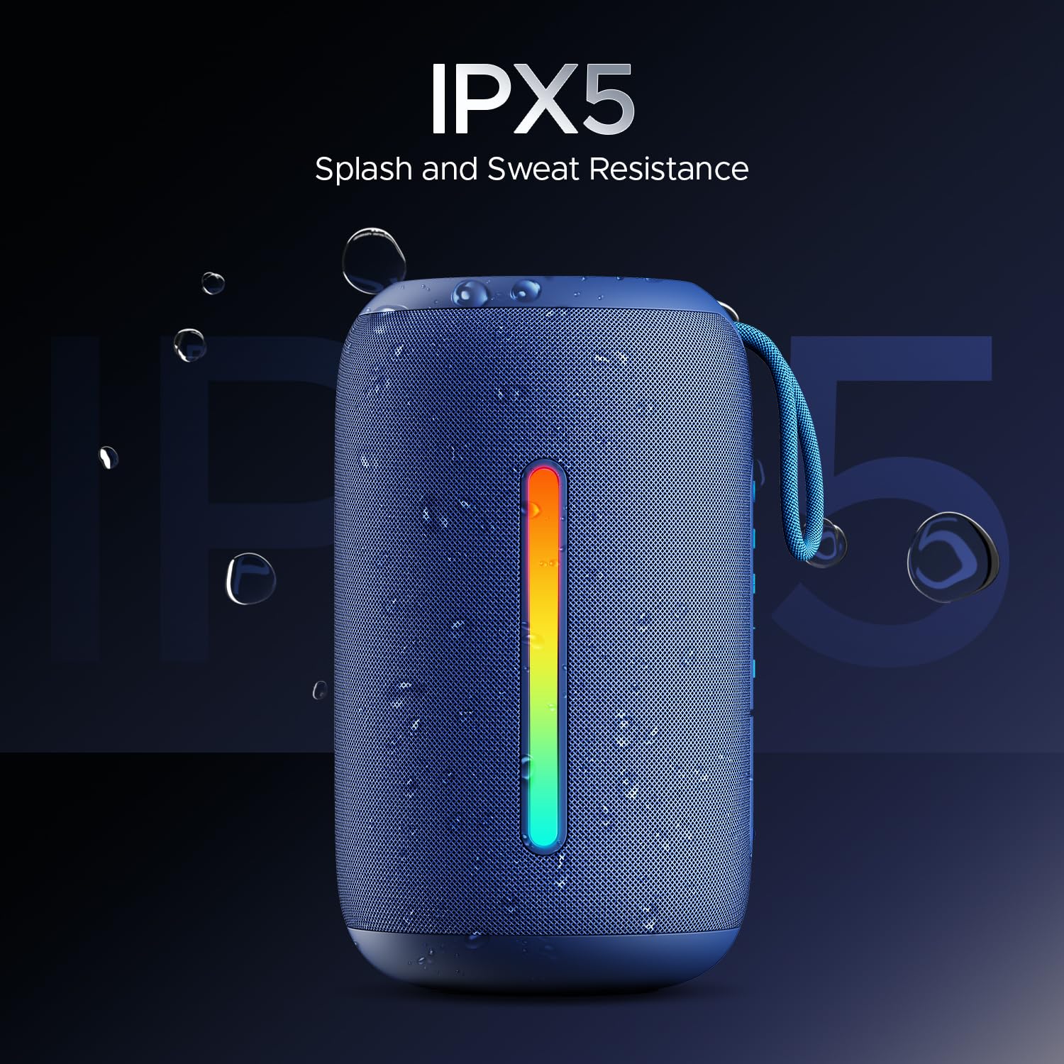 - IPX5 Resistance: Take your speaker to the gym, beach vacays, or the poolside without worrying as its IPX5 sweat and splash resistance ensures round-the-clock entertainment.