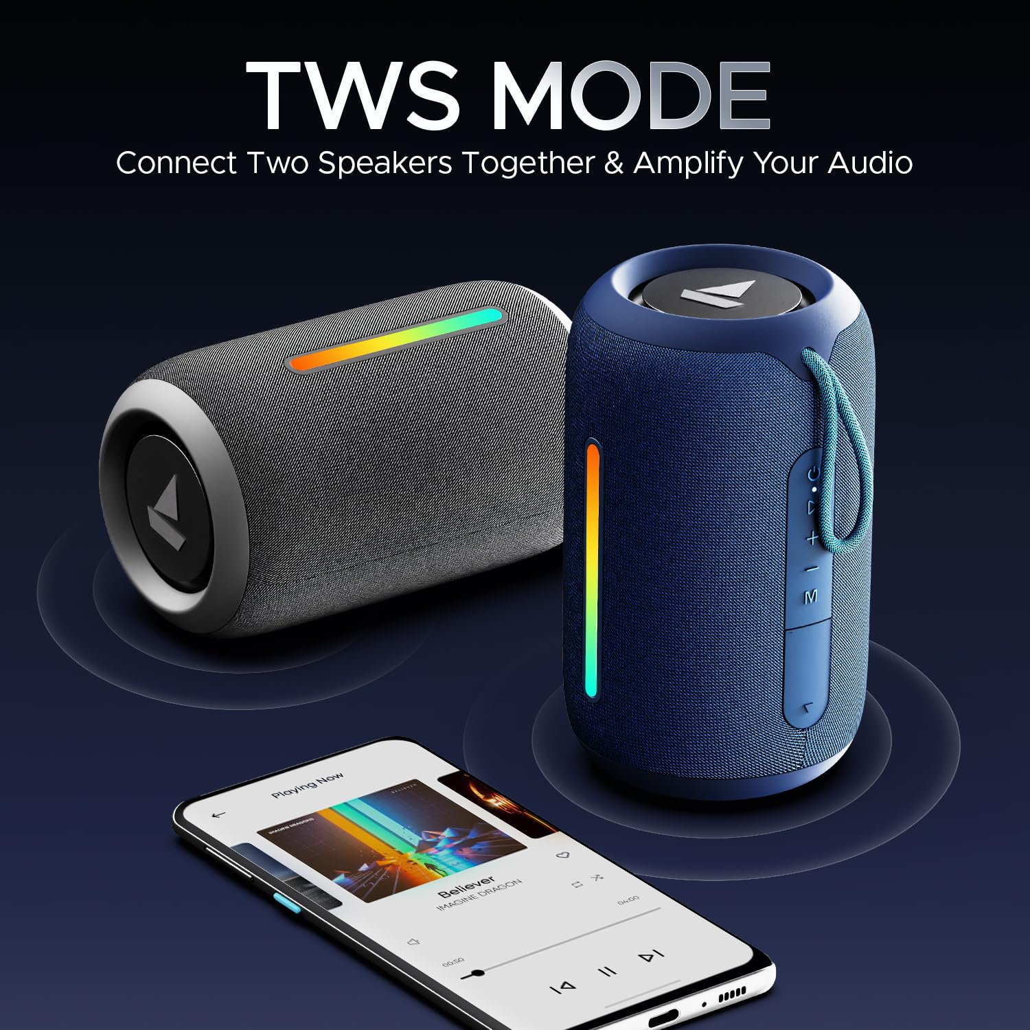 boAt Stone 352 Pro/Stone 358 Pro w/ 14W Signature Sound, Up to 12 Hours Playback, RGB LEDs, TWS Feature, Built-in Mic, BTv5.3, Free Music Streaming on JioSaavn Bluetooth Speaker (Vibing Blue)