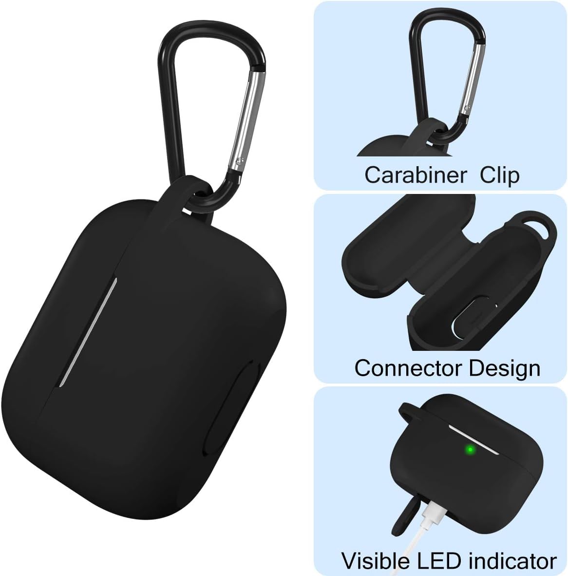 EDNITA Airpods Pro 2 Case Compatible with Airpod 2 Pro & Airpods Pro, Earphone Case Cover Keychain | Shock Ressitant Full Protection LED Visible (Black-1)