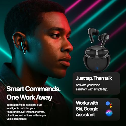 - Crystal-Clear Calls with Quad Mic ENC – Stay connected with superior call clarity. Ear buds featuring 4 advanced microphones and Environmental Noise Cancellation, these Bluetooth TWS earbuds capture your voice precisely while blocking out unwanted background noise—perfect for calls, meetings, or voice commands.