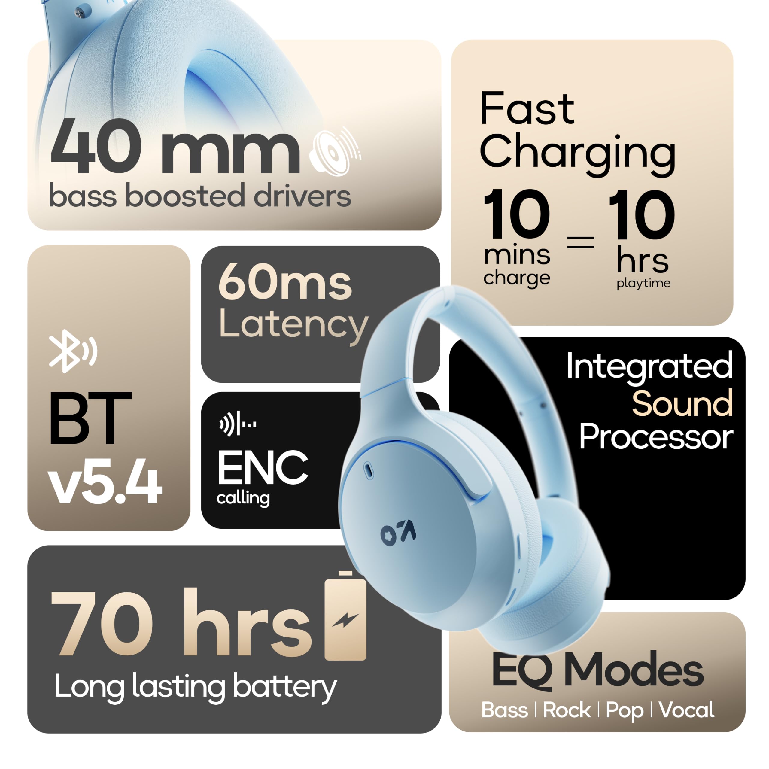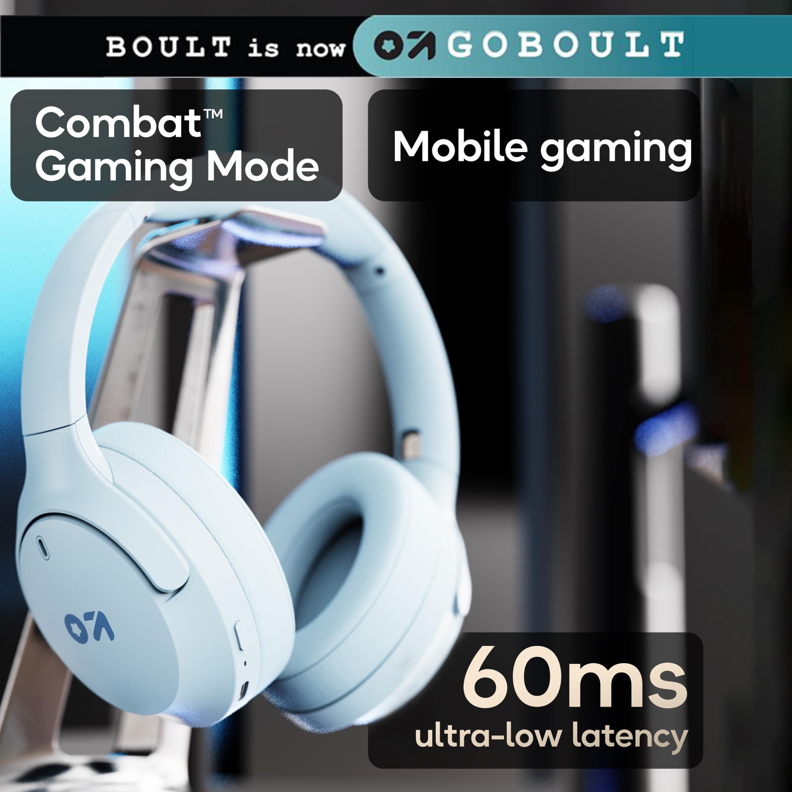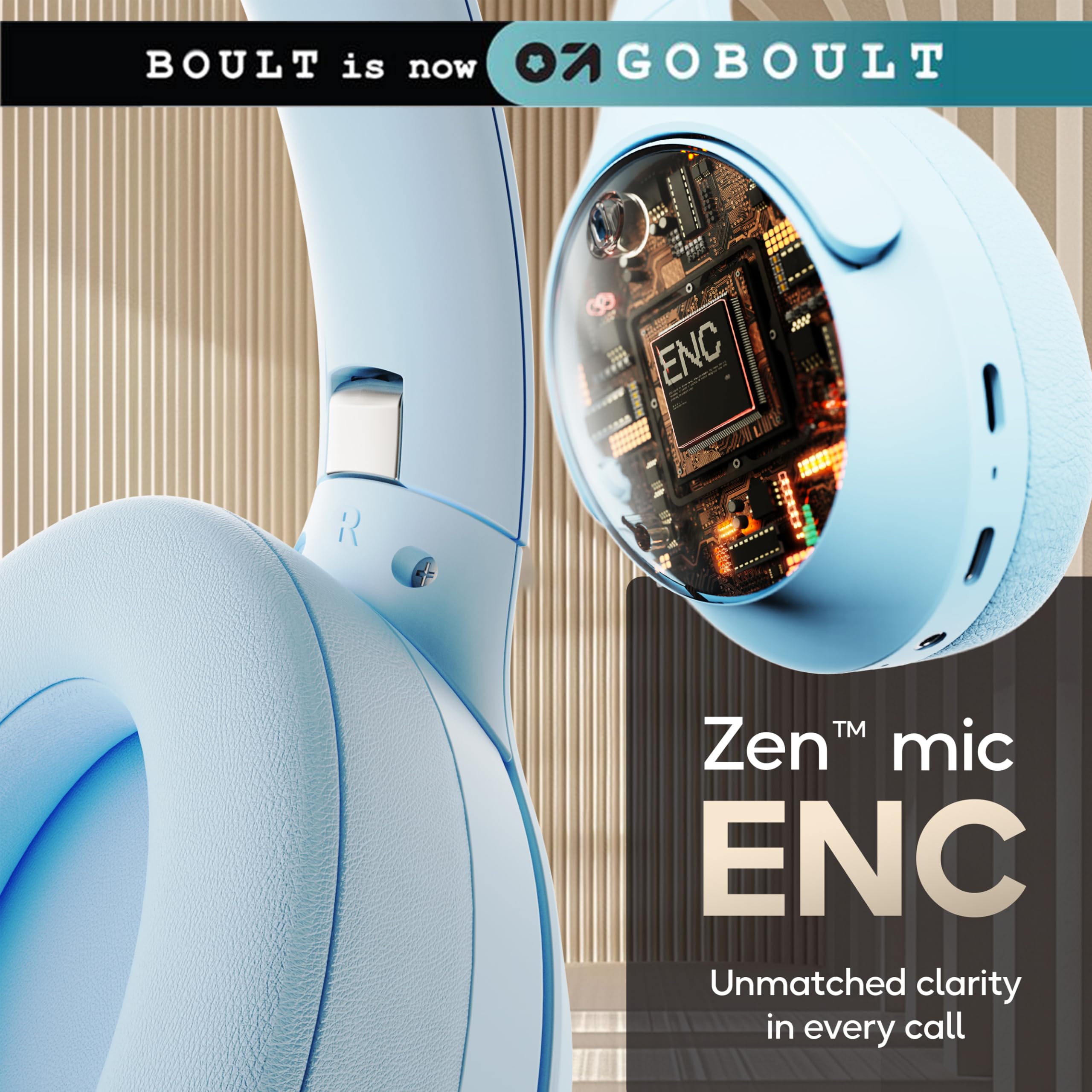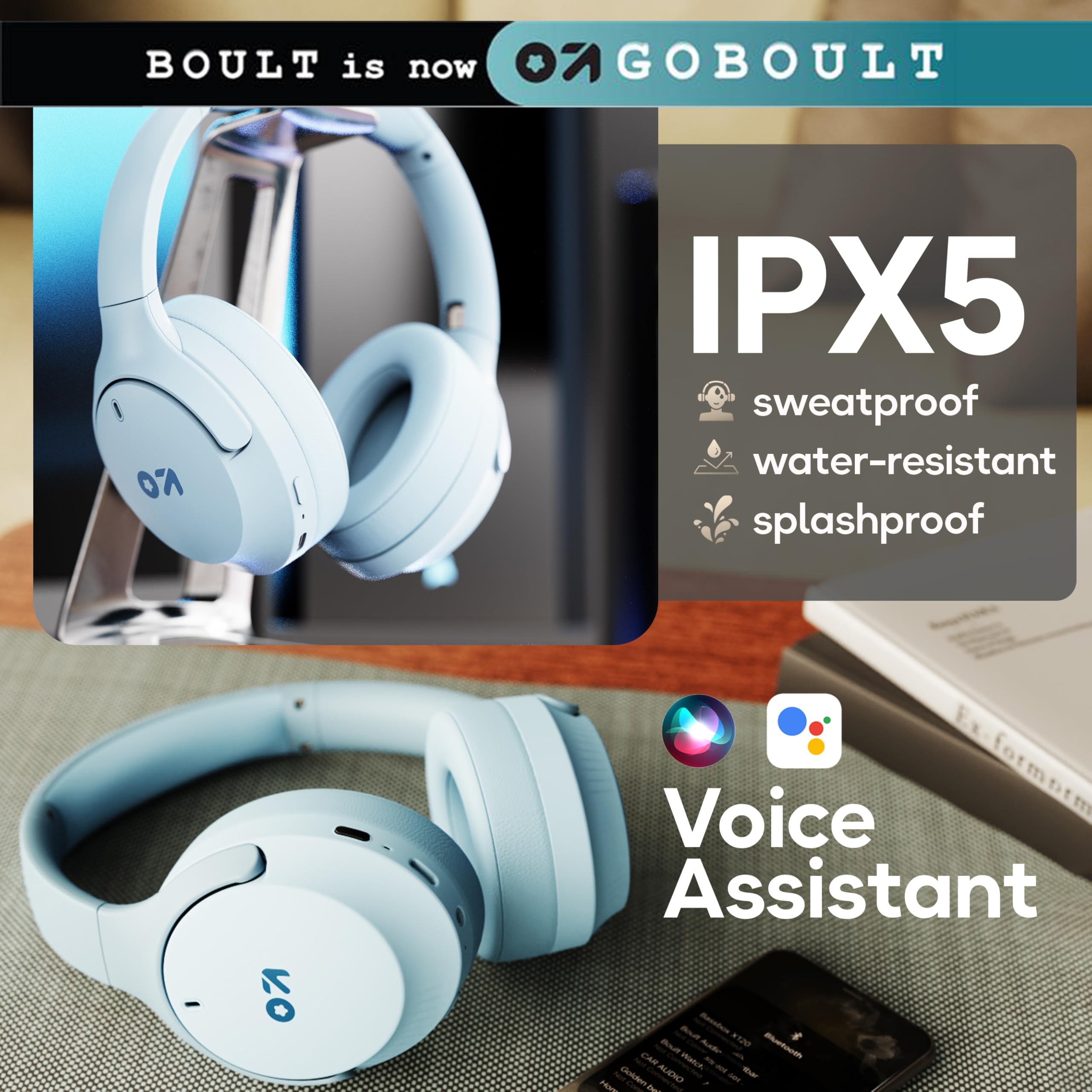 GOBOULT (Formerly Boult Made in India Q Over Ear Bluetooth Headphones with 70H Playtime, 40mm Bass Driver, Zen™ ENC Mic, Type-C Fast Charging, 4 EQ Mode Headphones Wireless with mic (Powder Blue)