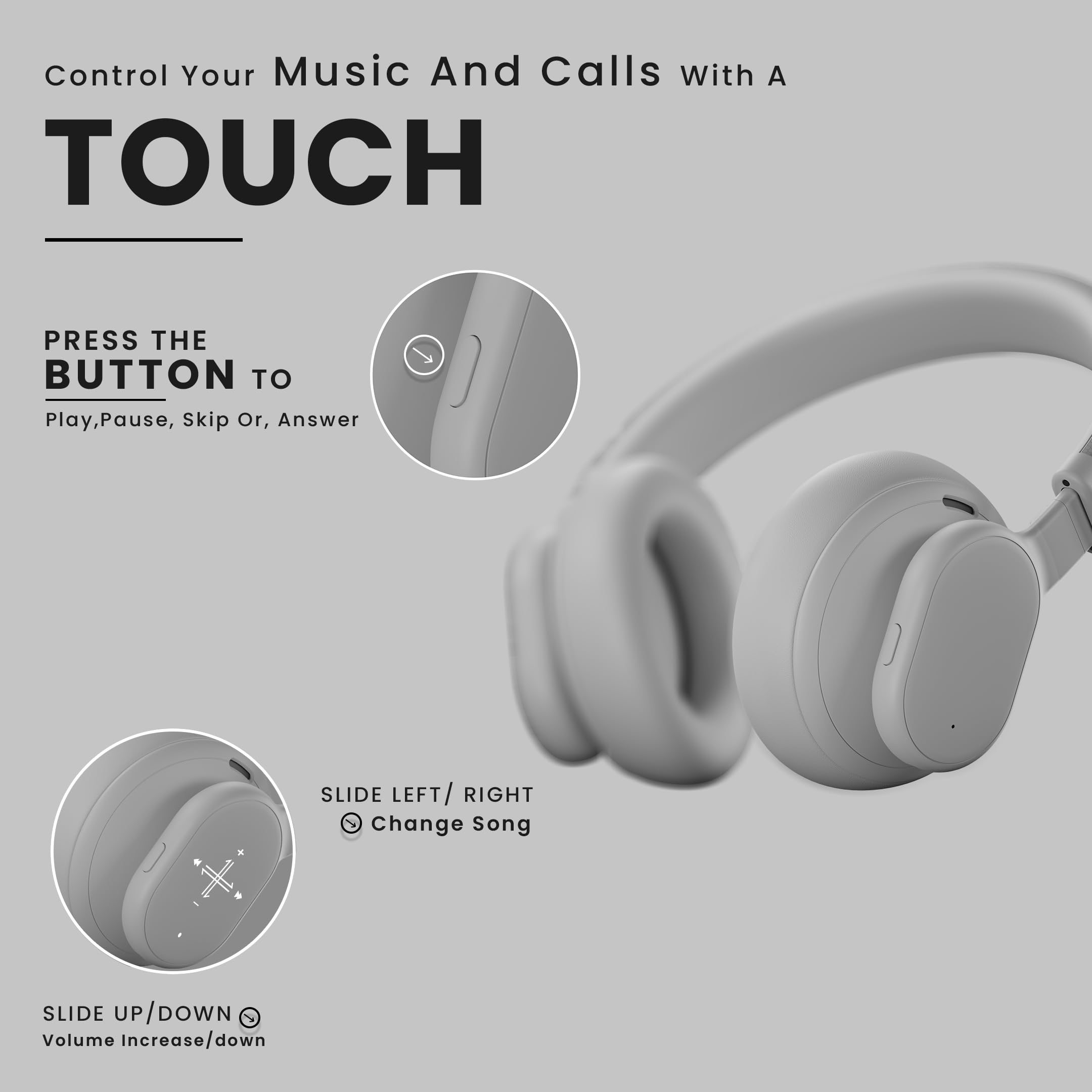 HAMMER Bash Max Over The Ear Wireless Bluetooth Headphones with Mic, Touch Control, Deep Bass, Upto 40 Hours Playtime, Bluetooth 5.3, Workout/Travel (Cool Grey)