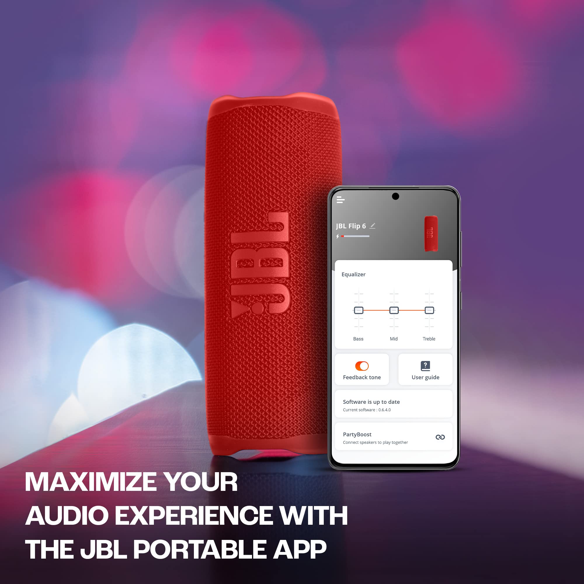 JBL Flip 6 Wireless Portable Bluetooth Speaker Pro Sound, Upto 12 Hours Playtime, IP67 Water & Dustproof, PartyBoost & Personalization by JBP App (Without Mic, Red)