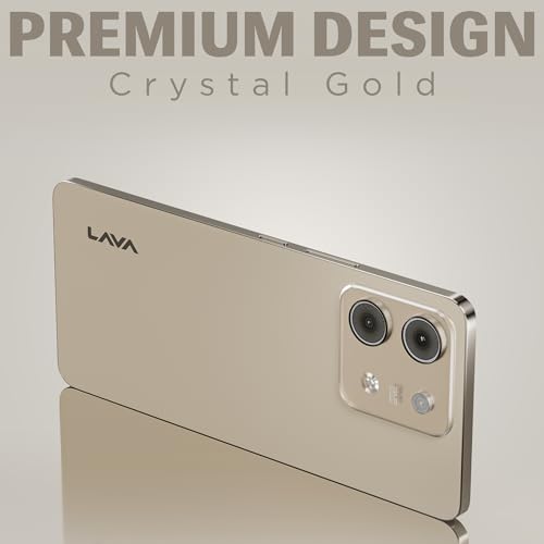 Lava Bold N1 Lite (Crystal Gold, 3 GB RAM, 64 GB Storage) | 6.75″ HD+ Display | 13MP AI Dual Rear Camera | 5000 mAh Battery | Secure Face Unlock | Fingerprint Reader | Charger & Phone-Cover in Box