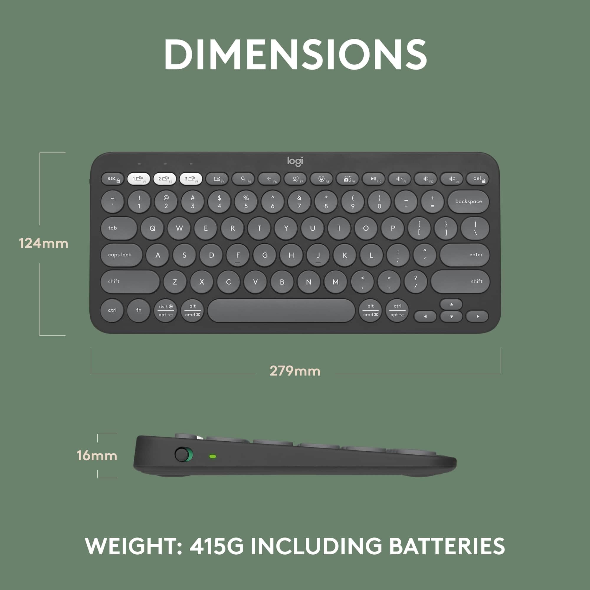 Logitech Pebble Keys 2 K380s, Multi-Device Bluetooth Wireless Keyboard with Customisable Shortcuts, Slim and Portable, Easy-Switch for Windows, macOS, iPadOS, Android, Chrome OS – Tonal Graphite