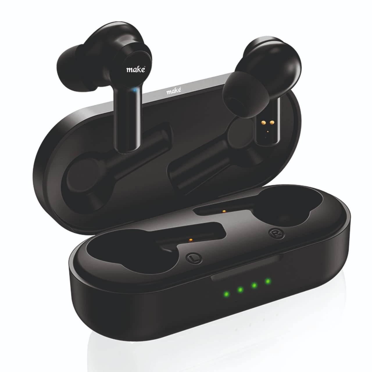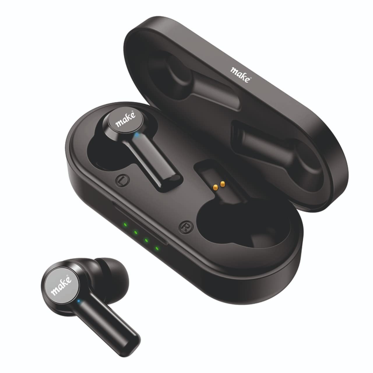 Details: Make E20 Airpods Touch control 3hr Playback time Case Backup 15hr . Every Make product is shaped and tuned with the utmost patience to extend the perfect listening experience to the minutest detail. The company through combining in-depth engineering and design strives to manufacture superior quality world class professional audio products.True Wireless Bluetooth Headphones(TWS) with immersive stereo sound, deep bass, smart touch control & 32 Hours of Total Playtime with the charging case.