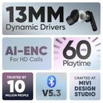 - Design & Build: The earbuds come with IPX 4.0 dust and sweat resistance, making them suitable for workouts, walks, and everyday use. Made in India: Crafted at Mivi Design Studio in India, with care and attention to detail. Description