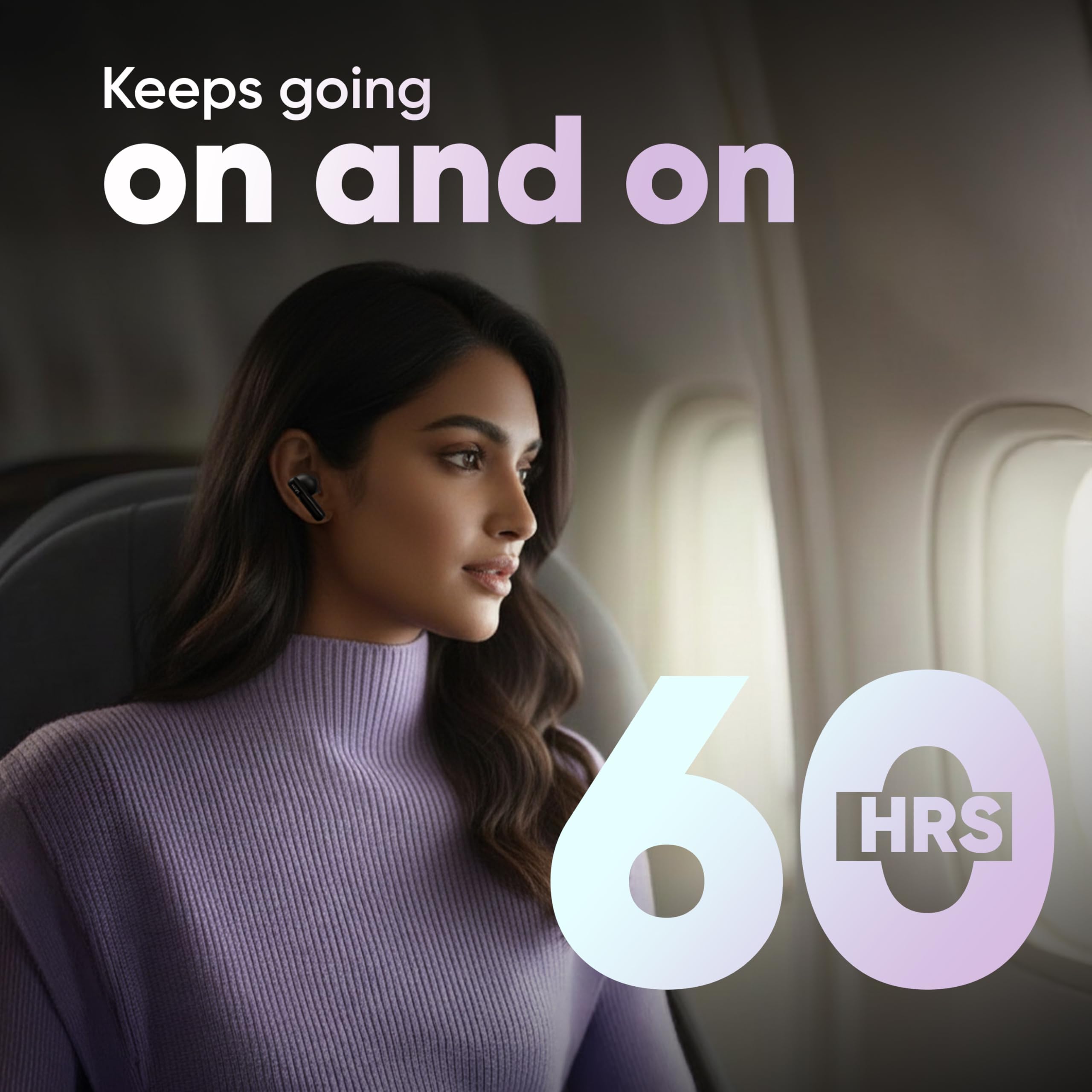 - Battery & Playtime: Enjoy up to 60 hours of playtime in total, along with 8.5 hours of on-buds playtime. A quick 10 minutes of charging gives you hours of listening when you need it.
