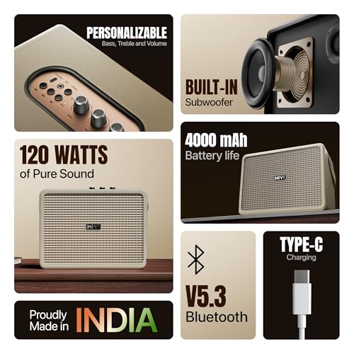 Mivi Superbox Classic | 120W Wireless Bluetooth Speaker with in-Built Subwoofer | Powerful Bass, Treble & Volume Control | AUX, USB, Type-C Charging | Portable & Made in India