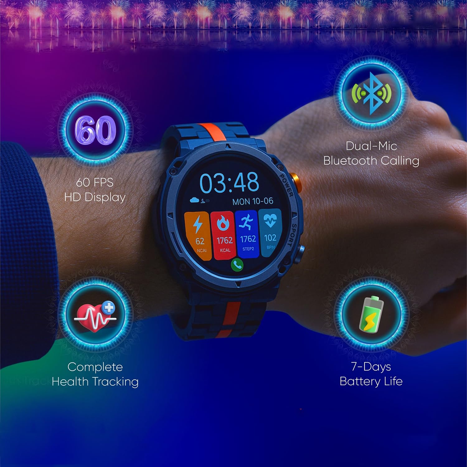 • MILITARY-GRADE DURABILITY ALLOY FRAME :- Crafted with aerospace-grade aluminum alloy and reinforced impact resistance, the Rampage withstands extreme conditions while maintaining its premium appearance. The revolutionary ergonomic design distributes weight evenly for unnoticeable comfort during extended wear, complemented by customizable military-inspired watch faces that maintain visibility in direct sunlight through advanced IPS technology.