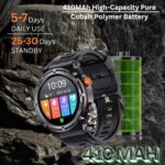 • UNSTOPPABLE 7-DAY BATTERY LIFE – Powered by a robust 410mAh battery for up to 7 days of active use on a single charge. Industry-Leading Power Management – Optimized technology that outperforms most comparable smartwatches. Revolutionary Fast-Charging – Get a full day of power in just 12 minutes of charging. Stay Connected Always – No more interruptions or frequent charging hassles, enjoy seamless connectivity anytime.