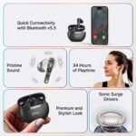 pTron Bassbuds Astra in-Ear TWS Earbuds w/Stereo Sound, 34Hrs Playtime, Stereo Calls, Custom EQ, Mobile App, BTv5.3 Headphones, Touch Control, Voice Assistant, Type C Charging & IPX4 (Black)