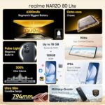 realme NARZO 80 Lite 4G (Obsidian Black, 6GB+128GB) | 6300mAh Segment’s Biggest Battery | 7.94mm Slim Design | 300% Ultra Volume | Pulse Light: 9 Colors, 5 Glow Modes | Ai Assist