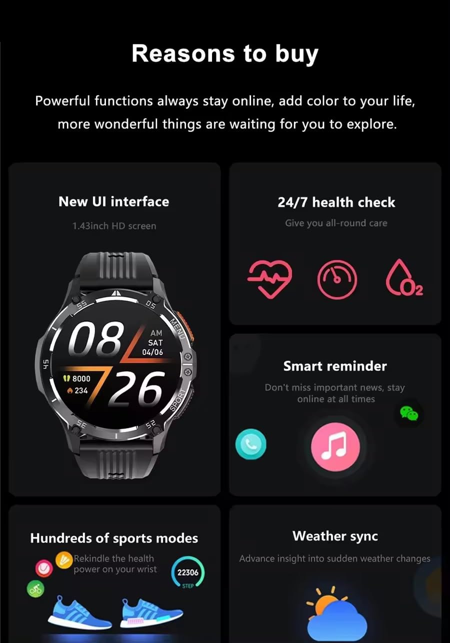 - WHY BUY FROM US: 🦅 At the heart of every great purchase is trust—and that’s exactly what we deliver. We’re not just a brand; we’re your partner in progress, your ally in innovation, and your source of uncompromising quality. Our commitment to excellence isn’t just a slogan—it’s woven into every detail, every interaction you will have with us. When you choose us, you’re not just buying a product—you’re investing in reliability, style, and a Watch that’s smarter and built around you. Your purchase is not the end—it’s the beginning of a meaningful journey, one we’re committed to making happier and healthier through our continuous support and dedicated service.