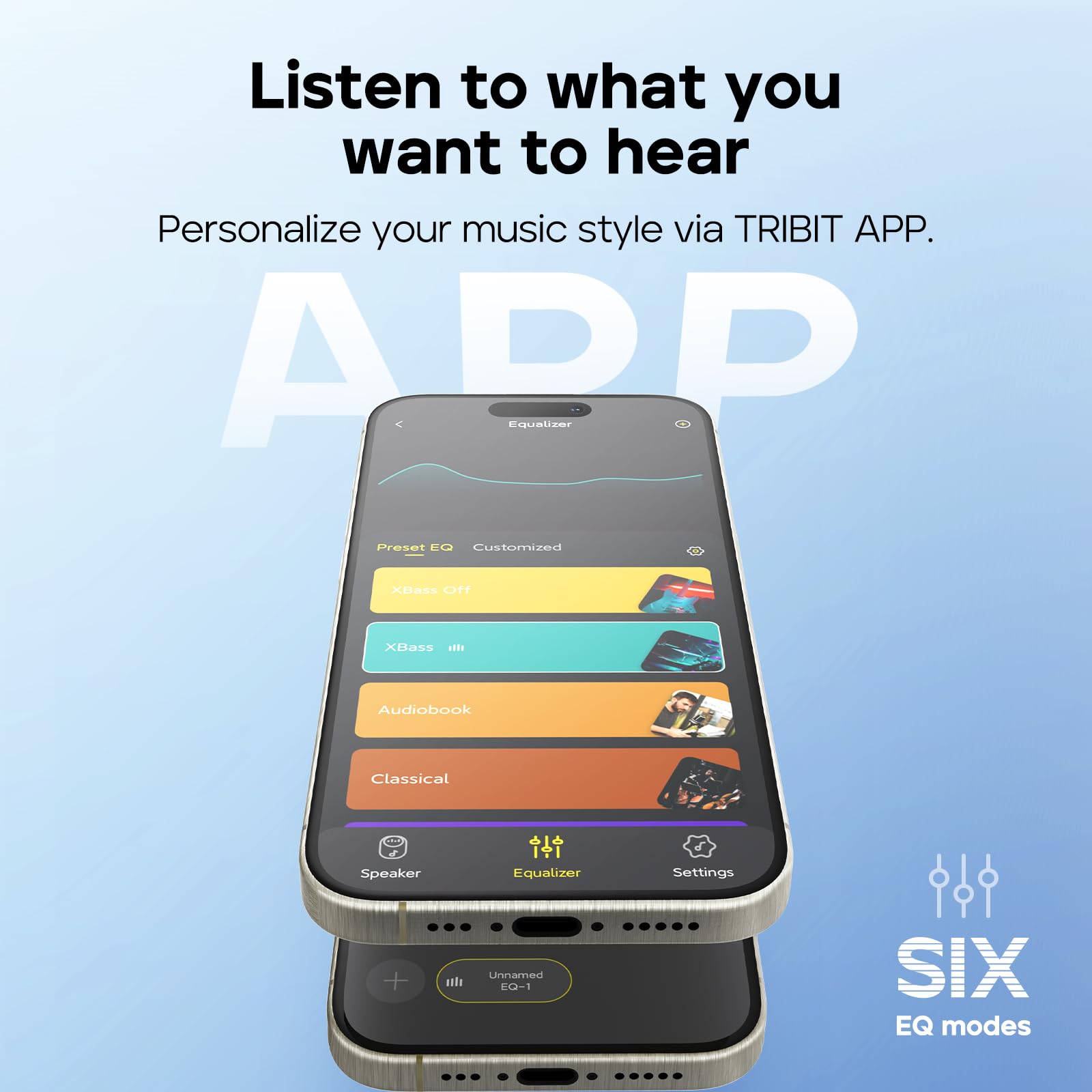 • 【Creative Customization】Personalize your music experience with the DIY EQ mode in the TRIBIT App. Choose from six scenes to tailor the sound to your preferences and needs, creating the perfect ambiance for any occasion.