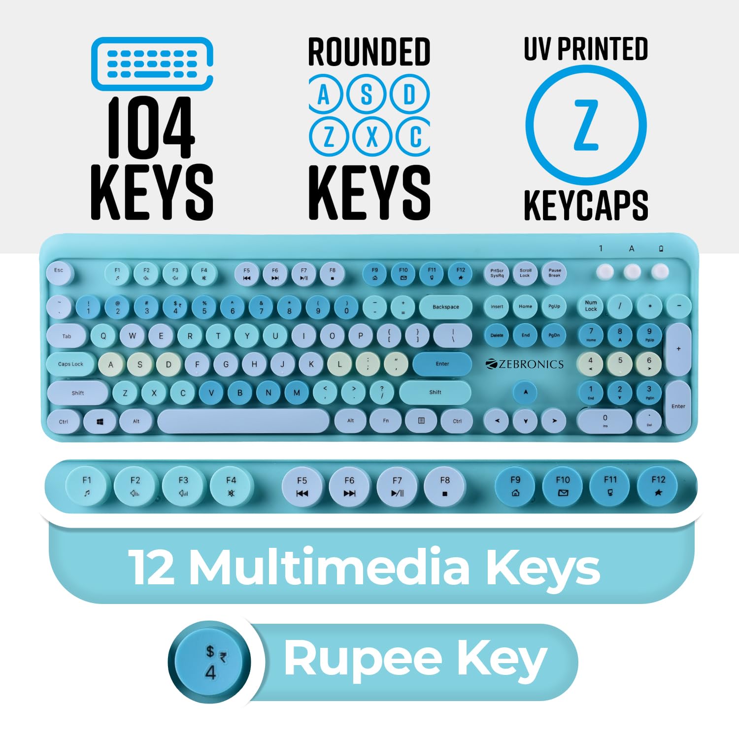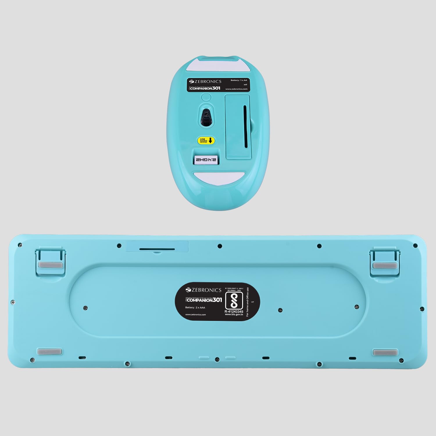 ZEBRONICS Newly launched Companion 301 2.4GHz Wireless Keyboard & Mouse Combo with UV Printed, Retro Style Keys, 104 + 12 Integrated Multimedia Keys, 1600 DPI, High Precision (Aqua Green)